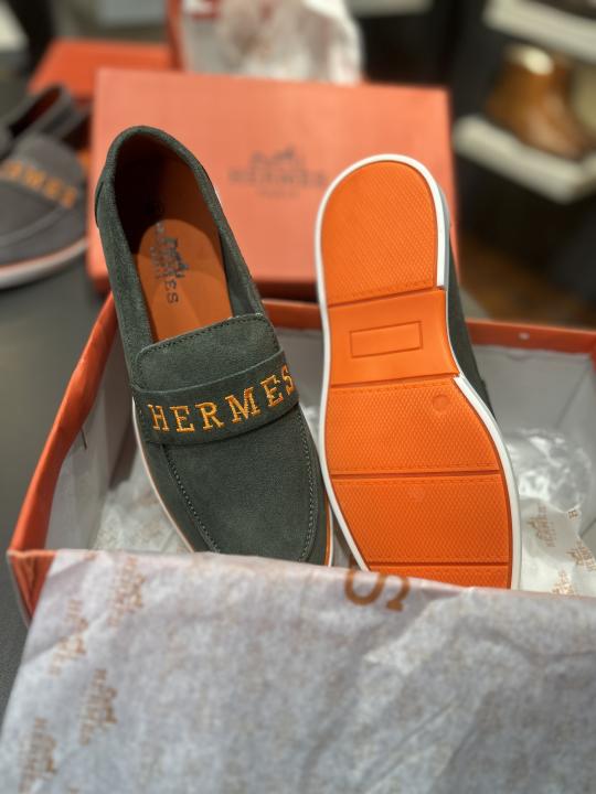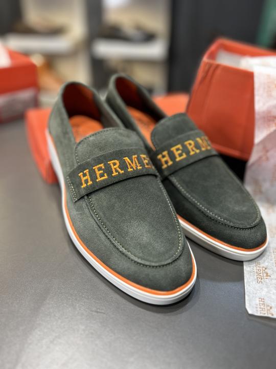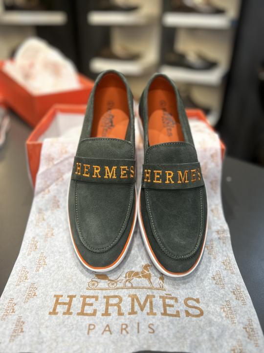 Home loafers Hermes_Embroidery logo Green 100% Geniune suede leather