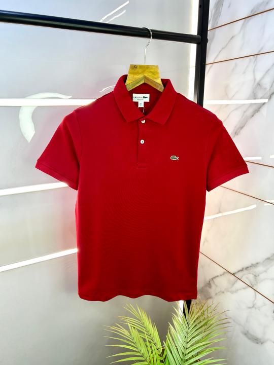 Sale Lacost e Red Polo Neck Premium Collar T-shirt RED-S-1827